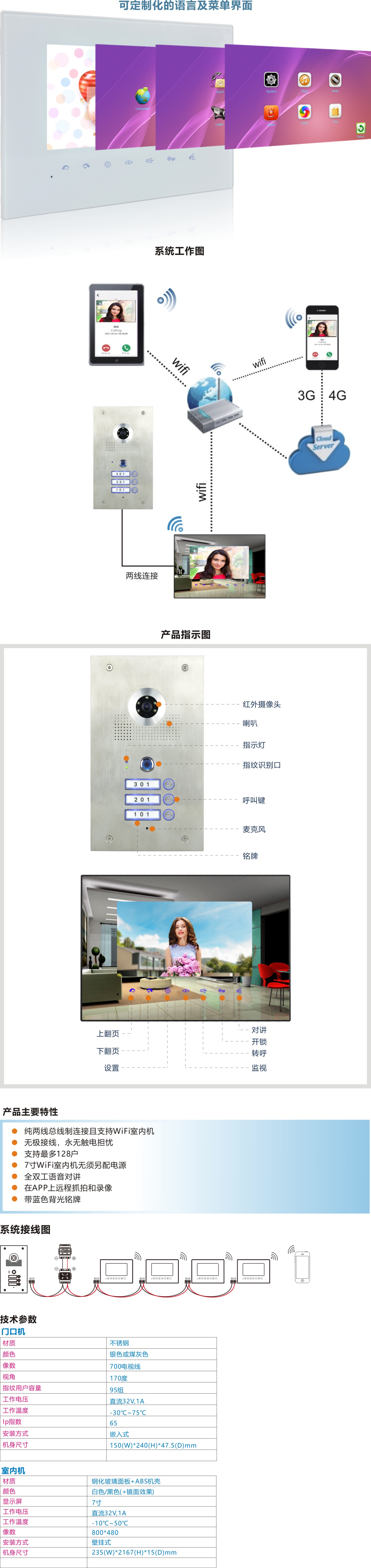纯两线总线制连接且支持WiFi室内机;