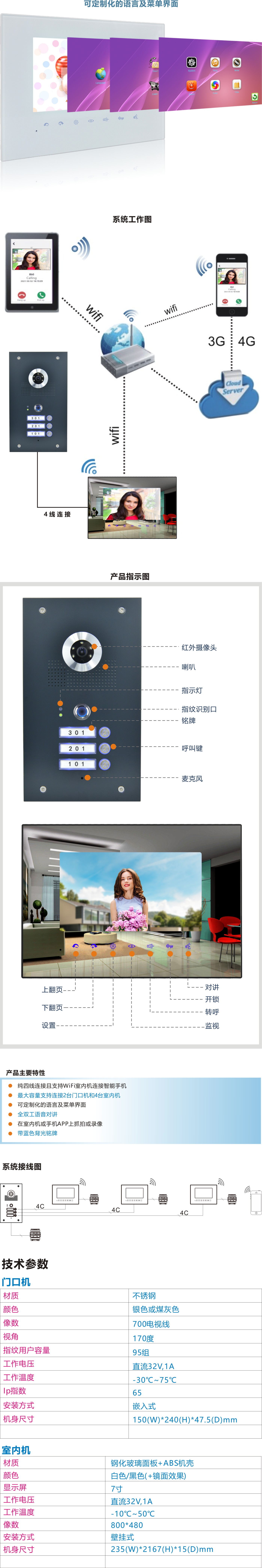 纯四线连接且支持WiFi室内机连接智能手机