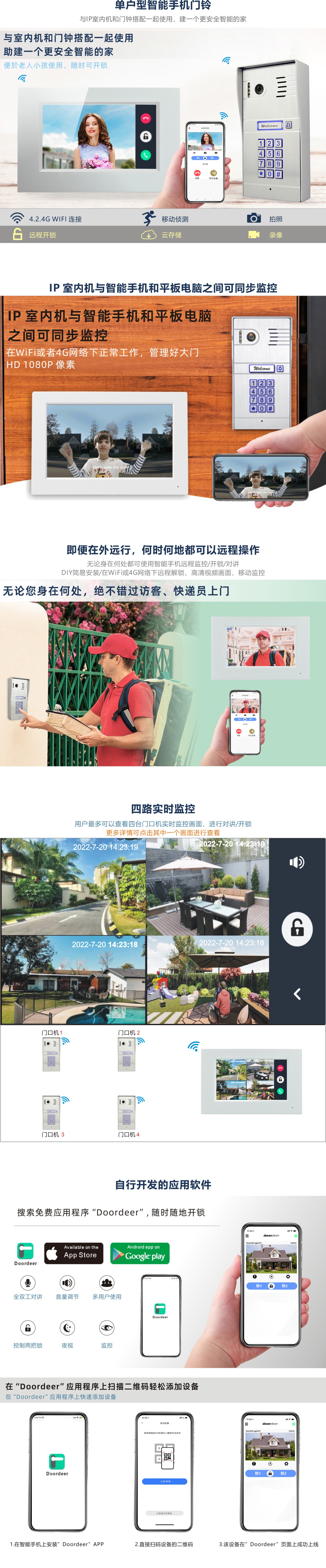 IP 室内机与智能手机和平板电脑之间可同步监控