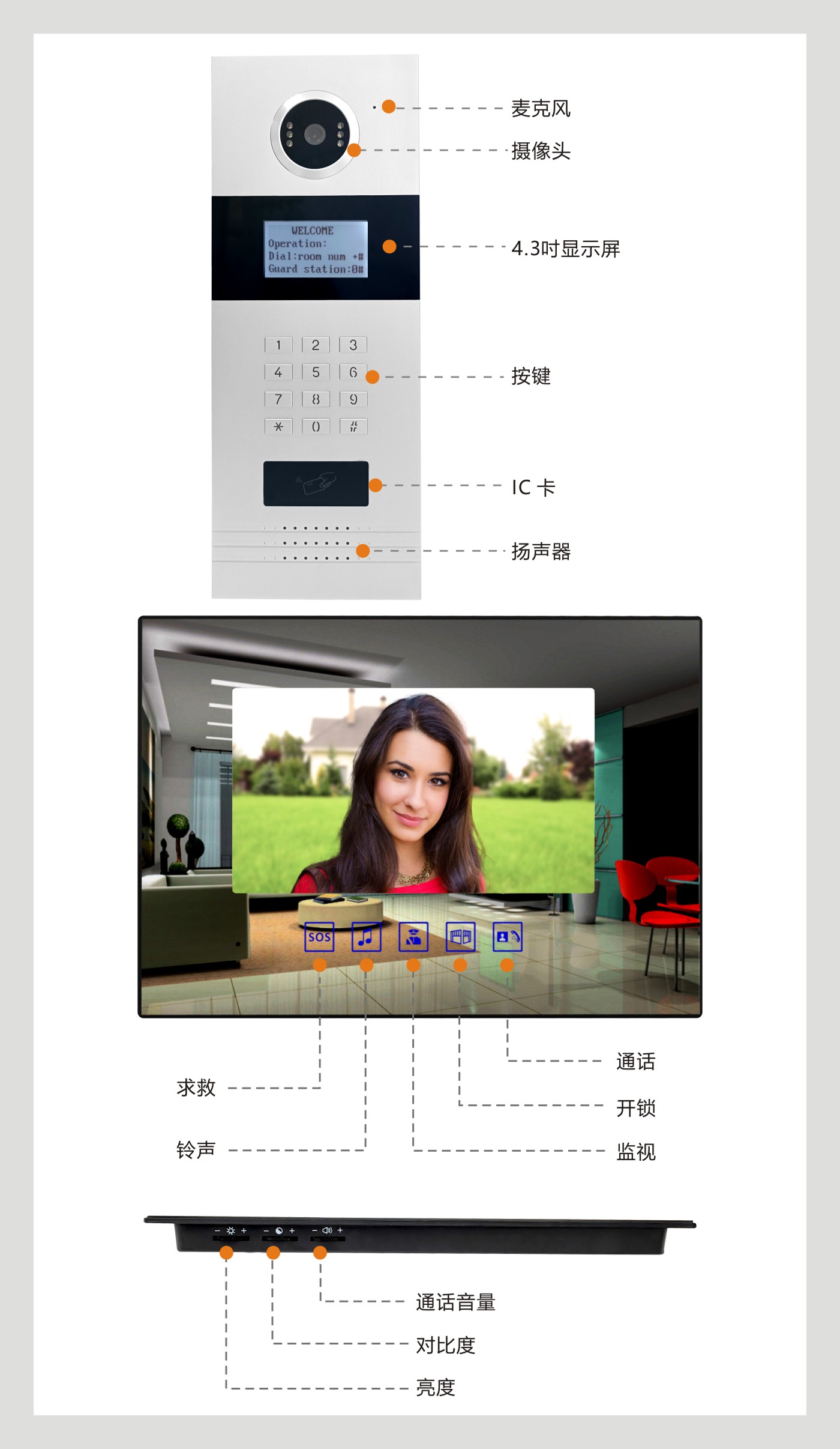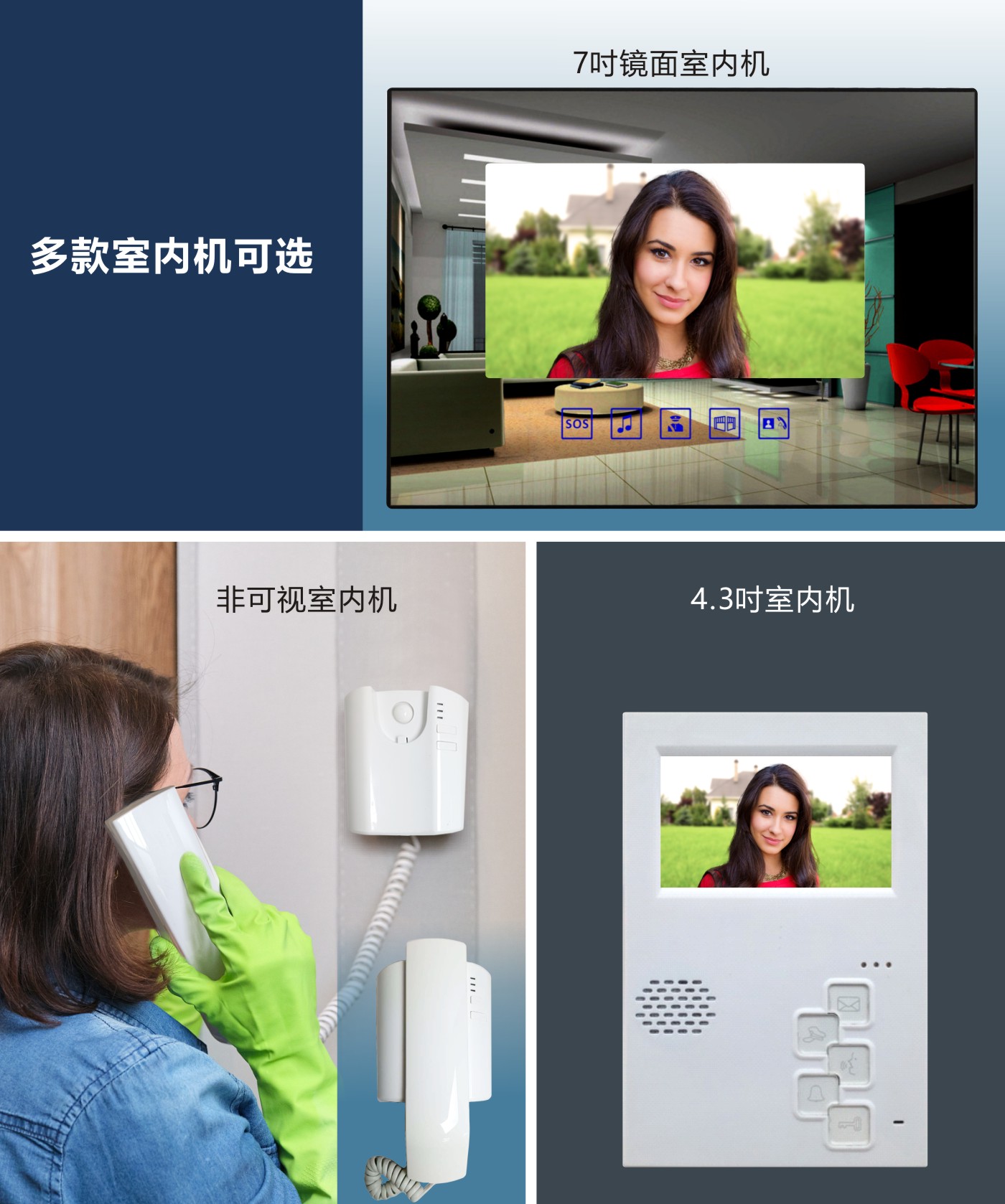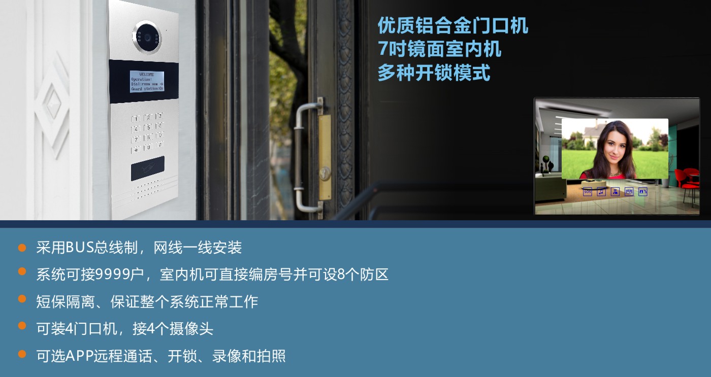 优质铝合金门口机/7吋镜面室内机/多种开锁模式